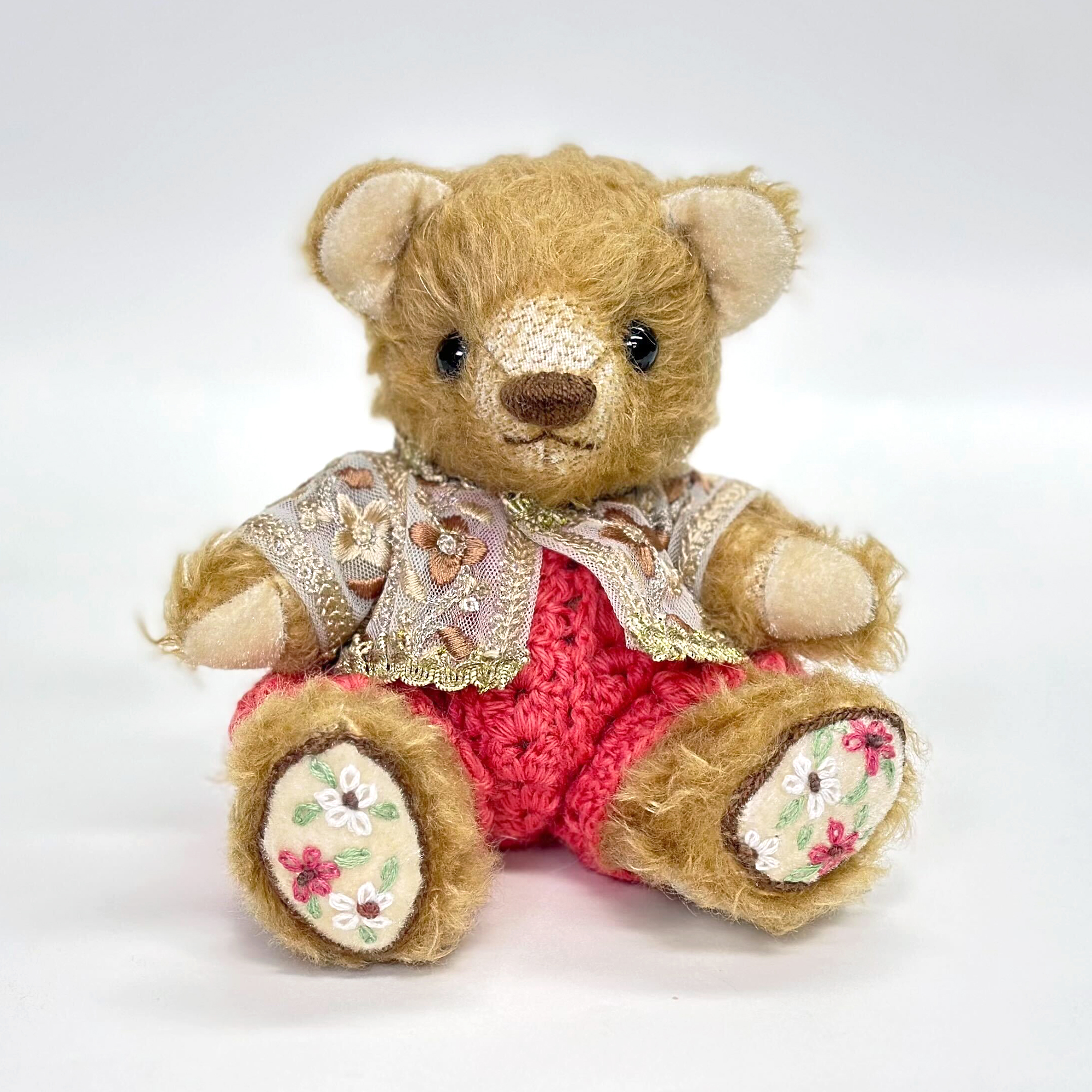テディベア:モヘア・フェルト・グラスアイ・刺繍糸・化繊綿