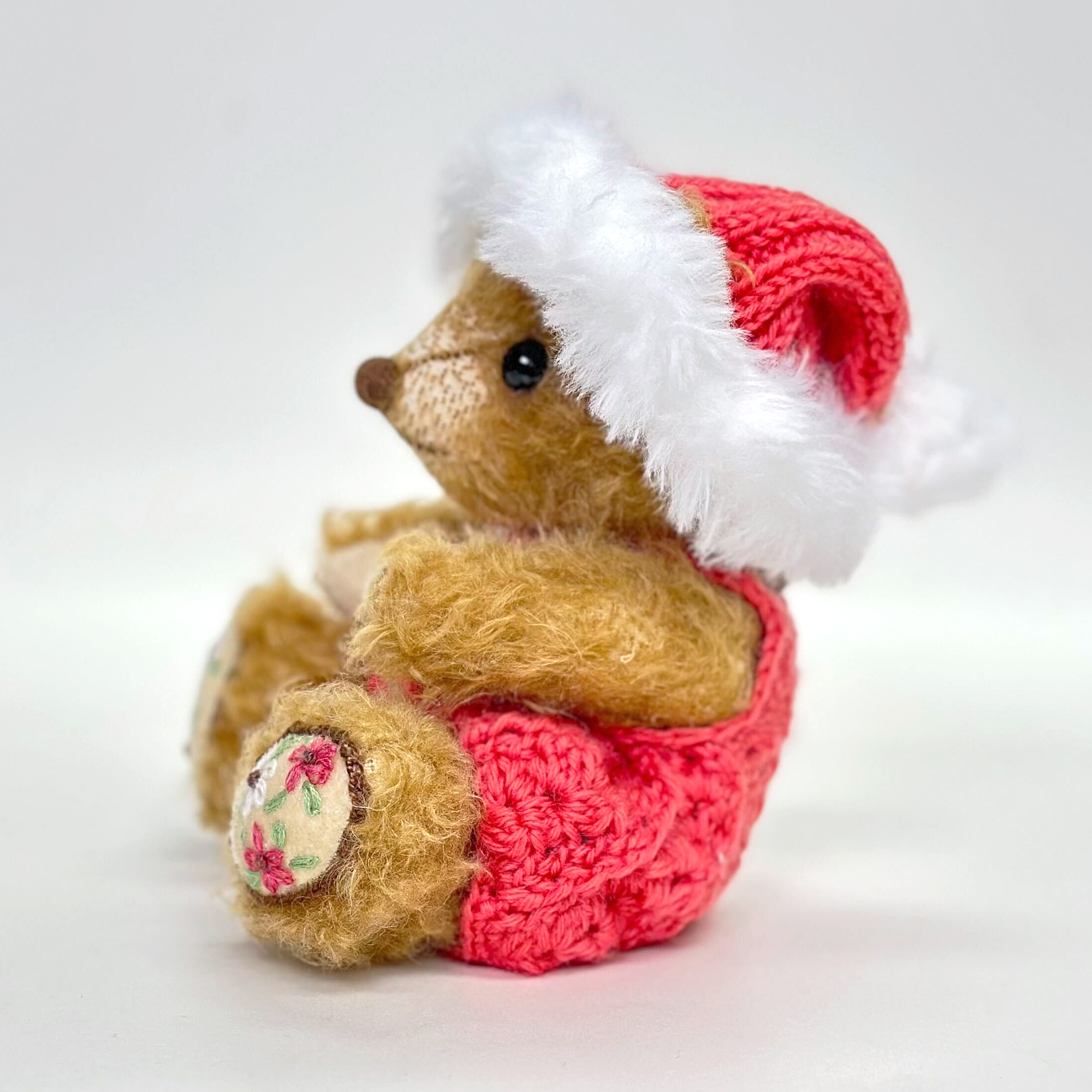 サンタを真似た帽子をかぶってXmasシーズンを楽しんでいる子供をイメージしたテディベアです