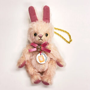 いたずらしそうなおかおのピンクのウサギキーチェーンです。