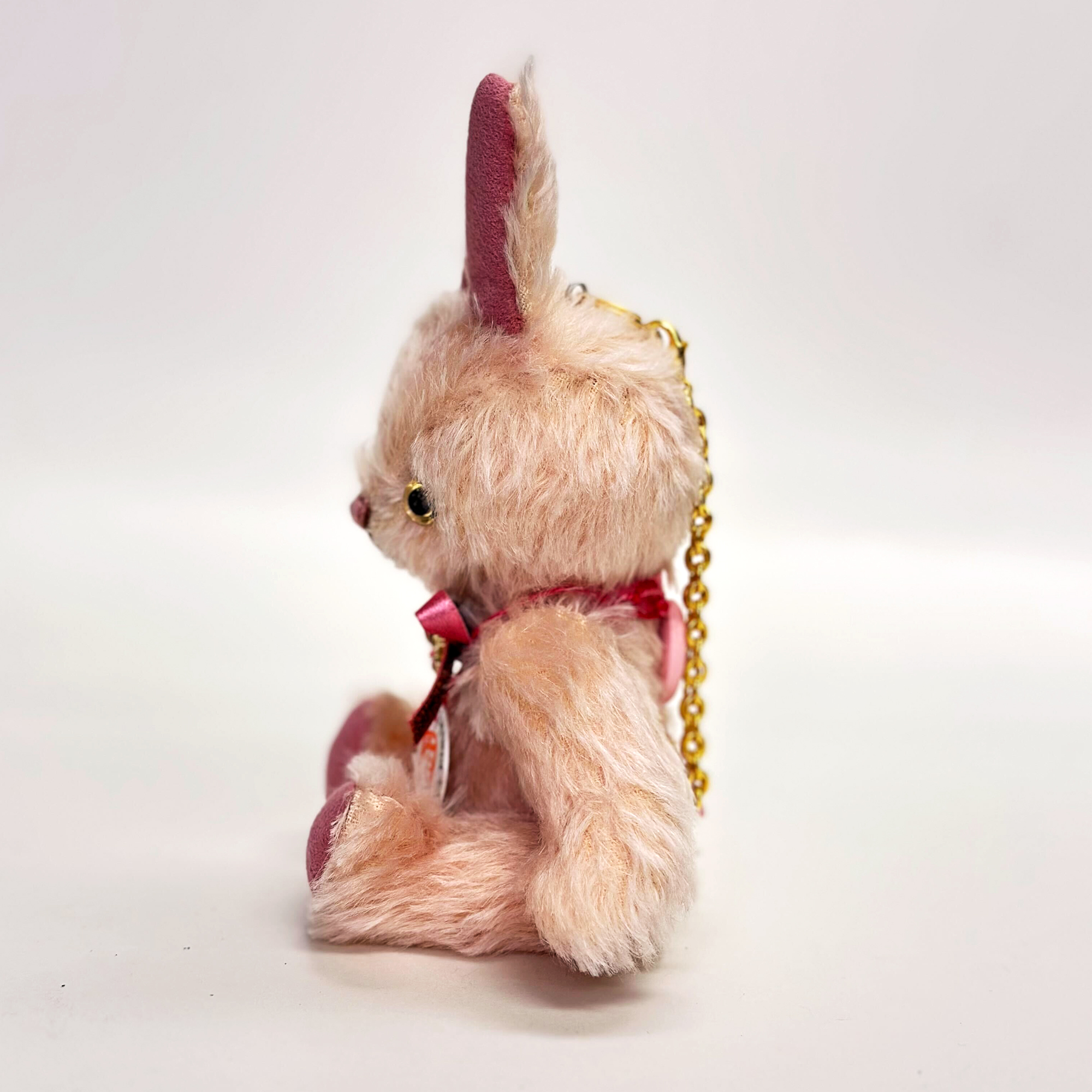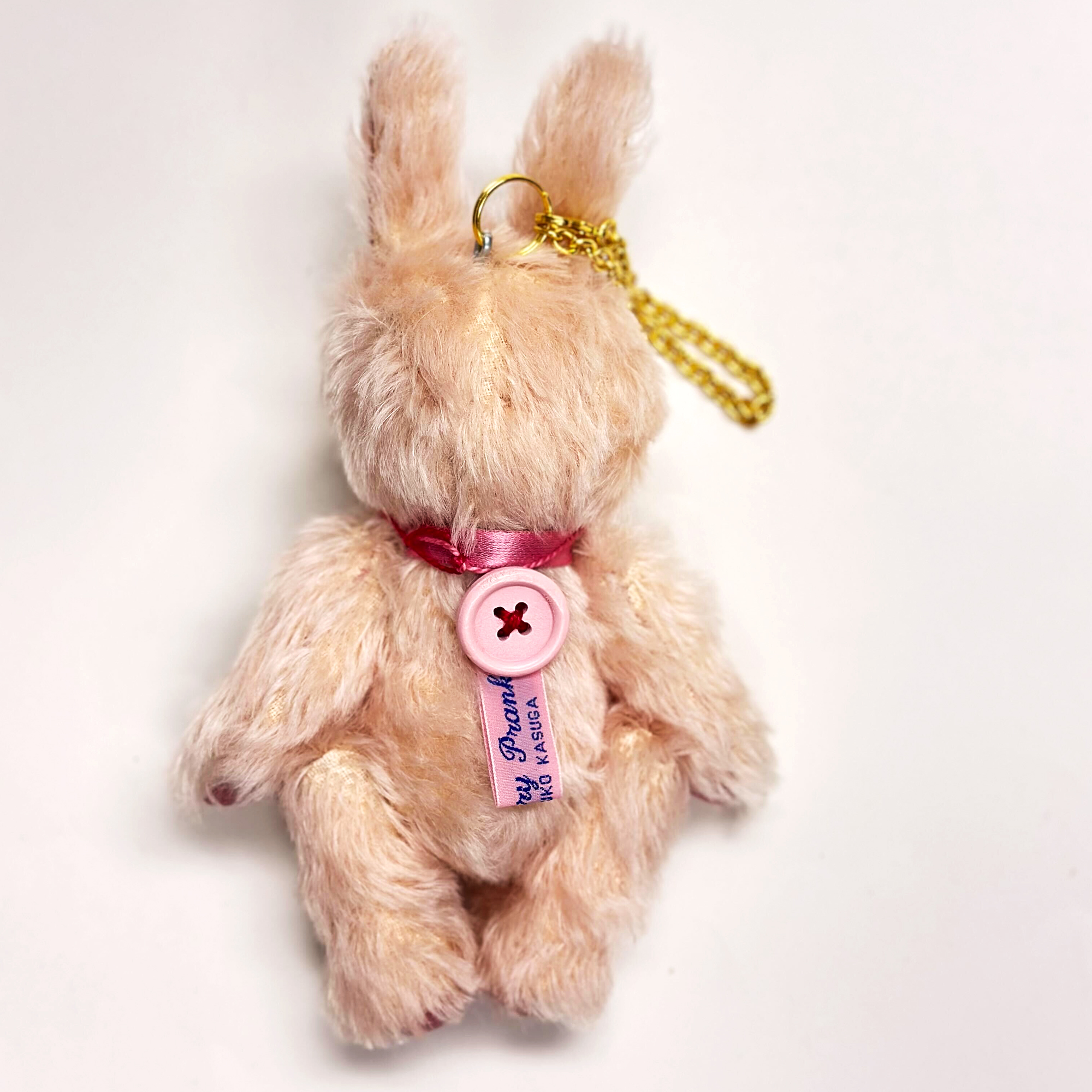 いたずらしそうなおかおのピンクのウサギキーチェーンです。