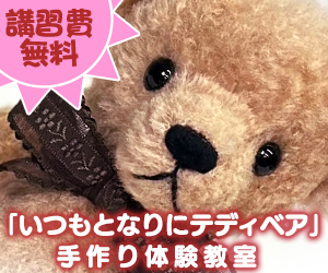 米崎樹美先生といっしょにテディベア・アニマルたちを作りませんか? 新しい教材「顔の切り替えベア」「耳の挟みこみうさぎ」も追加されました! どなたでもご参加になれます 半年で2体作ります。 初めての方でも大丈夫! のんびり、じっくり時間をかけて、仕上げていきます。 ぜひ、テディベアを作りながら楽しいひとときをお過ごし下さい。 -