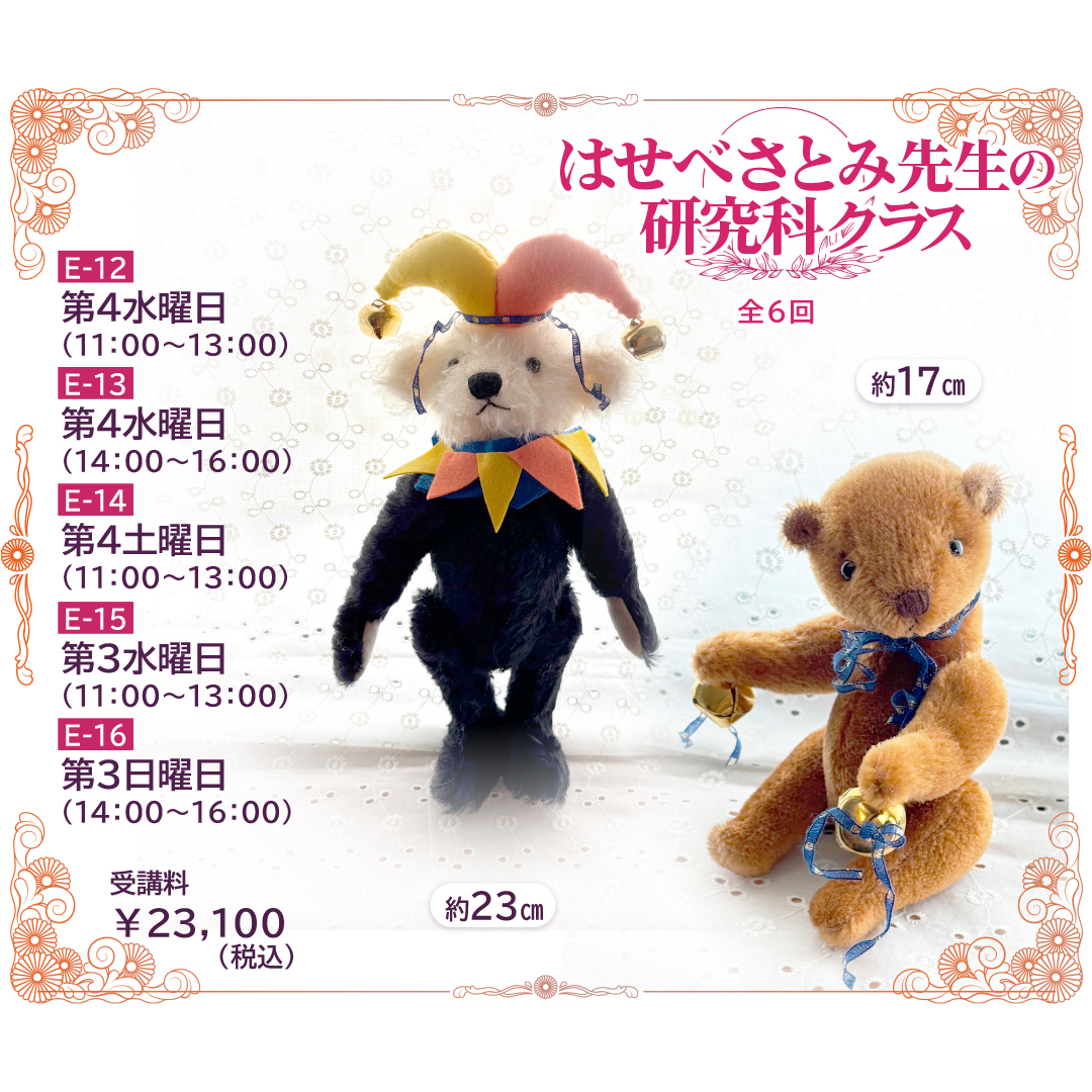 日頃テディベア作りにご無沙汰している方、もっと勉強したい方など、皆様と一緒に楽しいひとときを過ごしませんか?
