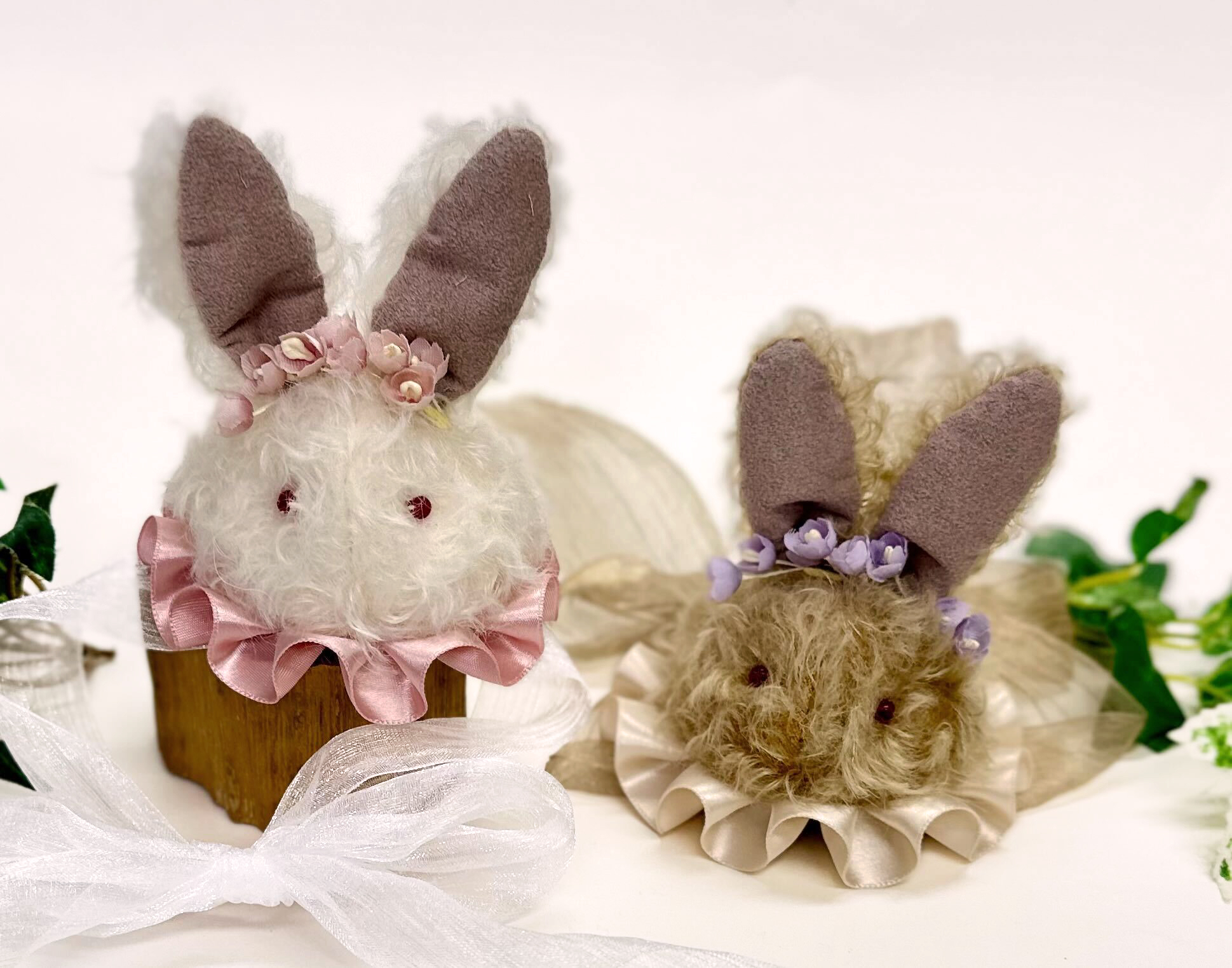 ふわふわのモヘアでちょっぴりおすましのうさぎさんヘッドアクセサリーを作ります。